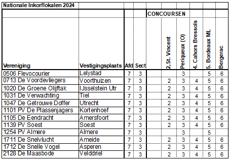 Mocht uw vereniging hier bij staan en kan er niet worden ingekorfd op een van deze vluchten geef dit dan door aan bestuur afdeling!